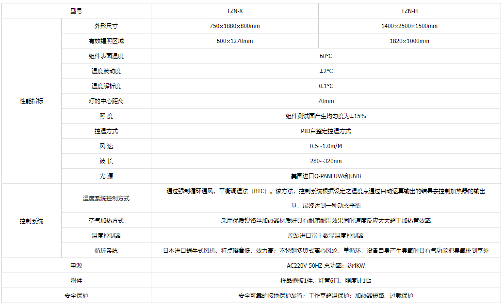 光伏組件紫外老化試驗(yàn)箱可滿足:光伏(PV)組件紫外試驗(yàn)GB/T19394—2003/IEC61345:998和GB/T2423.24-9模擬地面上的太陽(yáng)輻射試驗(yàn)方法。