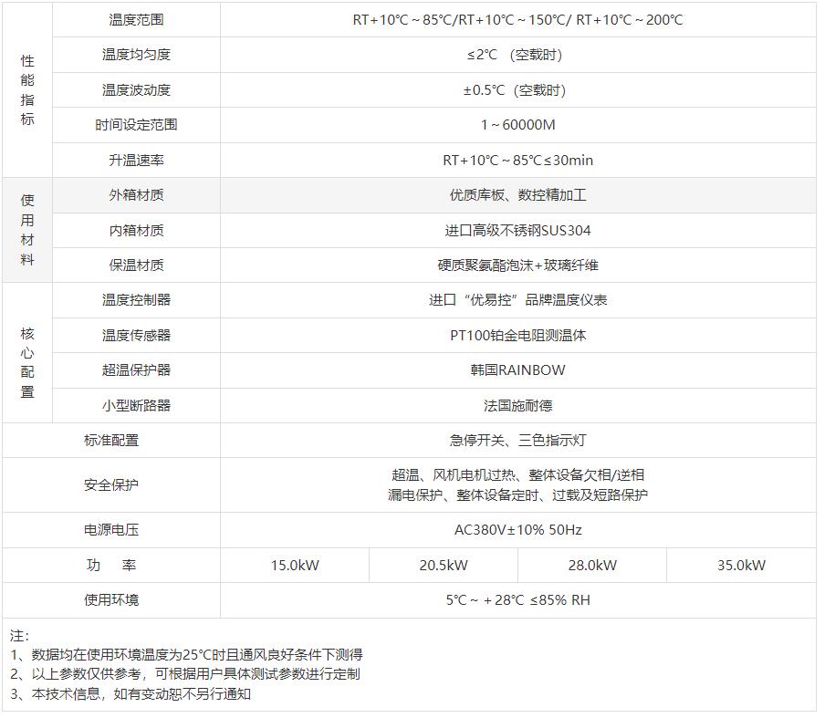 | 升溫速率 | RT+10℃~85℃≤30min | ||||||