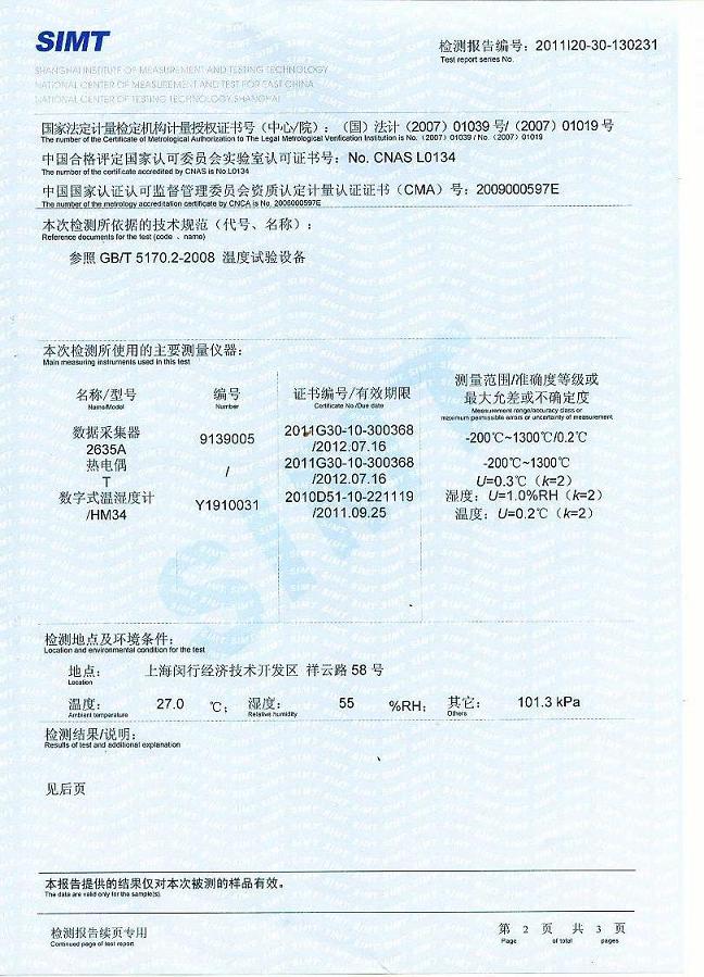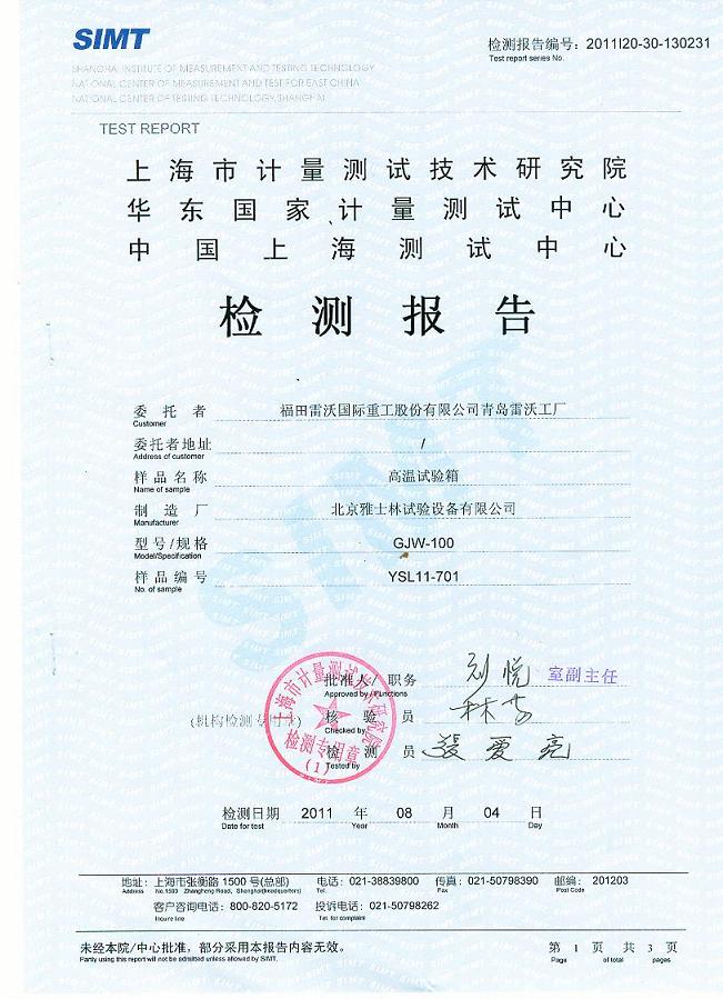 >>高溫試驗箱檢測報告-上海計量院-福田雷沃
